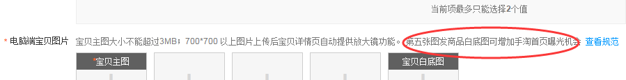 淘宝店家主图第五张设置白底图,设置白底图主要是帮助宝贝上手淘搜索页面。这个是淘宝官方给淘宝卖家的扶持。在宝贝发布页面上有清晰明了的写了。